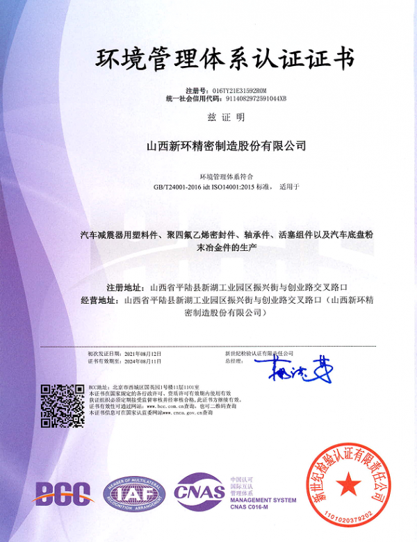 山西新環(huán)精密制造股份有限公司創(chuàng)建于1992年,是以研發(fā)、生產、銷售粉末冶金類、工程塑料類、橡膠制品類、氟塑類產品為主的高新技術企業(yè)。位于交通發(fā)達的山西省平陸縣城,距離三門峽市6 km,毗鄰隴海線,高鐵直達北京、上海、成都均為5小時左右,到達鄭州、西安皆為1小時,距離運城市機場35km。旗下子公司有:山西新環(huán)粉末冶金有限公司、山西新環(huán)科技有限公司、寧波新環(huán)氟塑料制品有限公司、寧波新環(huán)氟塑料制品有限公司軸業(yè)分公司、新勝達氟塑制品有限公司。現有高、精、尖設備120余臺套,固定資產總額1.8億元,年銷售額2.6億元。
